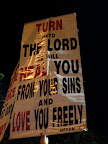 嘉年華會中有段小插曲。近入口處人聲沸騰,有兩面大旗,白底黑字加紅字重點,蠻醜的。我想:「也好,證明不是所有同志都有藝術天份。」走近時看清楚,懷疑自己眼花,大旗上寫著:回頭是岸神會醫好你的罪......