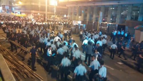 旺角凌晨清場。警方表示只是清除路障,但現場情況是事實上清場。