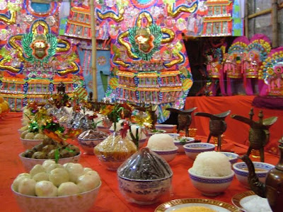 我們這些外行人對傳統的拜祭或許不太了解, 覺得都是搭幾個棚, 有個神位。但其實細看便知有所不同, 特別是不可將盂蘭節和祭祖相比。因為盂蘭節是祭路邊遊魂野鬼, 但祭祖是祭自己的祖先, 最起碼這裏會燒金銀衣紙。或許是這個原因, 盡管九龍城的盂蘭節也是在同一場地, 但拜祭的方位卻完全相反的。