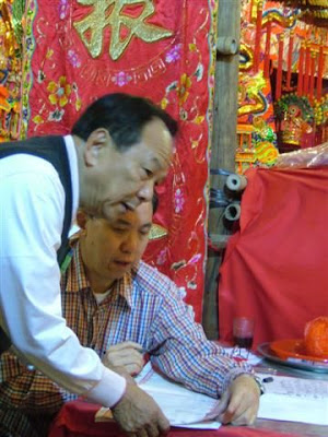 見到擲聖杯, 很容易就聯想到選總理, 因為很多地方的民間宗教, 特別是觀塘牛頭角一帶每年的總理一般是經擲聖杯決定。但郭小姐說, 選總者並不在這一兩晚選, 一般是之後回去他們的宗親會的辦事處才大家投票選。擲聖杯只是用作投福物用。