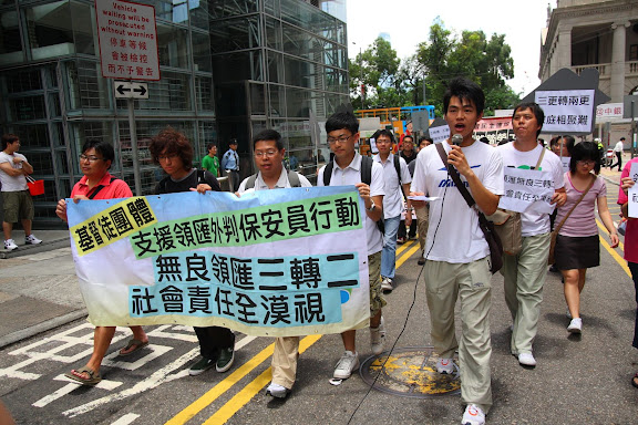 7月6日跟天主教勞工事務委員會到遮打花園,參與由職工盟發起的示威遊行。在出發前,數名警察上前,除了詢問參與組織及人數外,一名高級警司走近我們輕聲地說:「領匯離晒普!!好多警察都表示不滿如此做法!」,但限於工作性質及角色,他們只能在心中支持我們,藉著維持秩序「參與」遊行,正如他口中所言「大家都是做保安,感同身受」。我想,感同身受是一個非常重要的關鍵,沒有感同身受的體驗,是難以叫自己明白保安員面對的困難,亦難以說服自己參與抗爭行動。這裡令我聯想起昔日耶穌基督道成肉身,住在人群中與不同的生命相遇,道成肉身就是要感同身受;沒有相似經驗,說教只是一埋陳腔濫調的道德八股,抽象得來沒有生命力。當一眾示威者包圍領匯總部(實為總部對出的行人路一字排開),我急不及待走入保安員之中,和他們傾談,明白他們的困難,更重要的是讓我能聽他們生命的故事。起初保安員對我有一點介心,害怕是領匯的臥底,談了一會才放下猜疑,就是這樣三四個保安員你一言我兩語向我分享工作和憂慮,我也說出在公屋成長的日子和對日漸私有化的討厭。老實說,這種分享未必對抗爭有大幫助,但能夠感同身受,就是道成肉身的另一種彰顯;沒有「罪」、「相信」、「永生」等字眼,卻流露出福音的精神和意義。