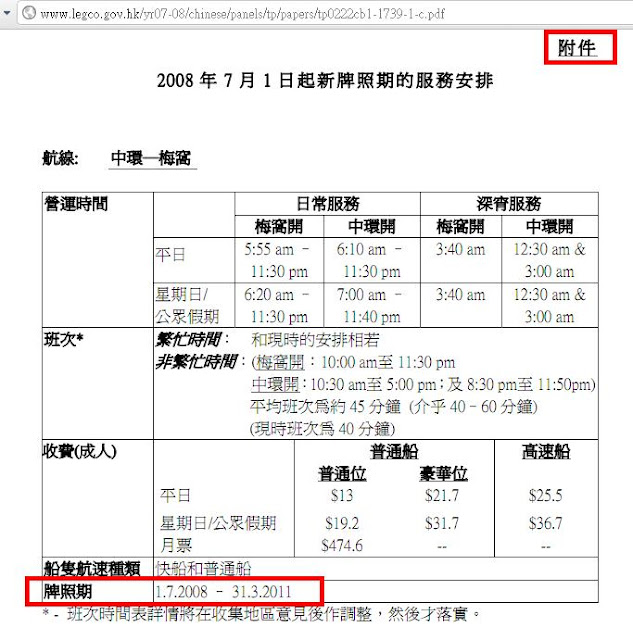 二) 運輸署仍泛指各離島渡輪牌照是3年有效期,沒有明確指出梅窩牌照無故"被縮短"誤導離島居民足足3年!