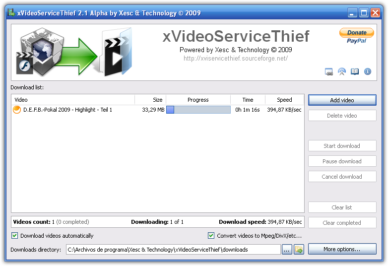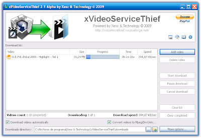 xVideoServiceThief把視頻網站上的的影片下載回來及轉檔,目前支援76個視頻網站,可以把影片轉為AVI、MPEG1,MPEG2、WMV、MP4、3GP、MP3等格式。