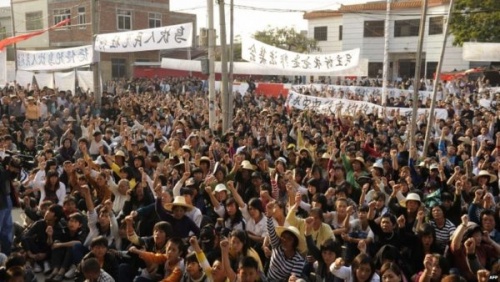 在林受審之後,烏坎村民的抗議行動升級。上週漁民發動罷工,人民組織「總罷市」,商店全面關閉。村民每天上街要求釋放林祖戀。