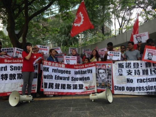 不僅斯諾登公開表示支持在港難民,喬瑟夫‧高登-李維也在臉書和推特上發表聲明,支持我們在香港聲援斯諾登和難民的示威。電影末段出現2013年6月社會主義行動有份協辦的保衛斯諾登遊行,我們的橫額也出現在其中一幕。