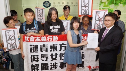 5月10日,社會主義行動的鄧美晶與多個團體代表,到平機會辦事處示威,要求公正處理《東方日報》侮辱女性的言論。我們認為東方應立即解僱撰寫5月1日「功夫茶」專欄的編輯。社會民主連線、難民聯會、民生議政、香港蕩婦遊行以及新婦女協進會都有代表出席。示威者高呼「譴責東方日報」、「性別歧視可恥」、「解僱涉事編輯」,並將請願信遞交至平機會主席陳章明。社會主義行動於4月30日舉行撐難民大遊行後,《東方日報》翌日於專欄侮辱鄧美晶,寫道:「鄧美晶小姐最好咪出夜街,如果唔係,萬一遇到南亞假難民要求濕吻甚至有進一步動作,都唔知應該點樣反應。當然喇,以鄧小姐咁有愛心,對假難民咁仁慈,相信一定會好好配合,可能仲覺得係一種享受添。」。社會主義行動會繼續尋求法律意見,並發起社會抗爭行動,繼續對抗《東方日報》的種族主義及性別歧視言論。