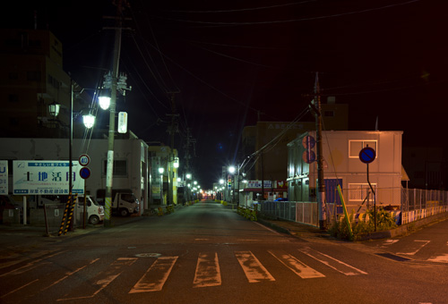 到了入夜,我們準備離開,原來杳無人煙的城鎮,到了晚上更加荒涼,整個地區除了街燈,沒有一點燈光。我們在拍下這過個情景同時,也反思香港附近兩個核電廠,如果發生事故,這就是香港的寫照。機械是一定有故障的,分別只是規模大小,我們應該思索,是否需要核電這不安全的能源?