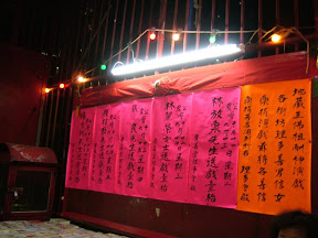 事實上,其他的神誕一般只做幾天,但這裡則最少做十數天,除了可能因為這裏沒有租場的問題-他們是在廟內的戲枱上做戲的(盡管也有申請在公園周圍掛花牌的事),肅先生說也是因為他們比較“正氣”,那麼多年來都沒有什麼意外和爭執,所以政府有關部門批申請時都比較寛鬆。話雖如此,每晚還是有警察上來登記持牌人/負責人的資料,說是有人投訴。不過,那麼多年來從來都不知道是什麼人投訴。
