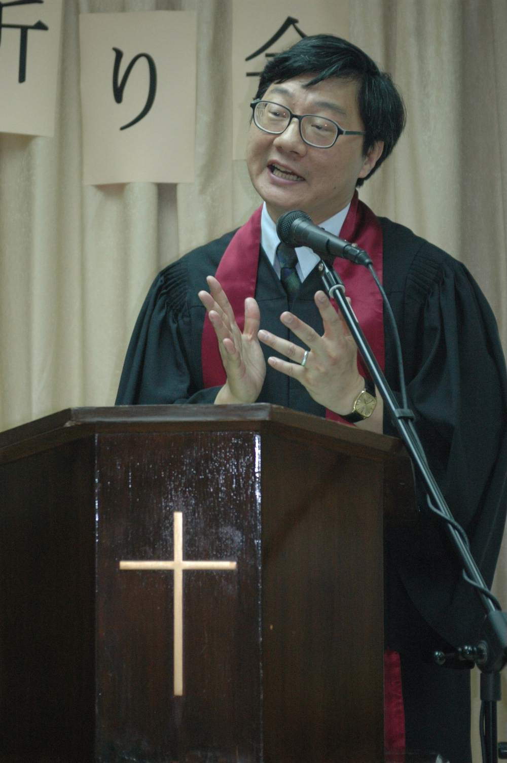 崇拜中,參加者同時分別以廣東話及日語同心唱詩,而在教新的余慧根牧師主持分組祈禱環節時,亦特別著參加者找不同國籍的信徒一起禱告,參加者都相當投入,有不認識的中日信徒手握著手的同心祈禱,也有少部分年長信徒在禱告時流下了眼淚。