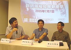 在今年初才成立、香港首個跨機構的「IT團契」──香港基督徒資訊及通訊科技網絡──昨晚(七月七日)首次舉行公開講座,題目為「數碼版權發展新衝擊」,邀得學生福音團契前總幹事錢北斗、港大計算機科學系主任劉智滿博士及中大崇基學院神學院副教授龔立人博士主講。三人分別來自神學界及電腦界,帶出不少具啟發性的觀點。