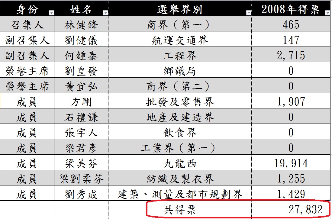 然而,我們一起來看看工商專業聯盟十二位立法會議員的得票: