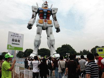 現在這個機器人的體積還相當於一個人,不知當這種技術用在下面實物一樣大的高達上又會怎樣?