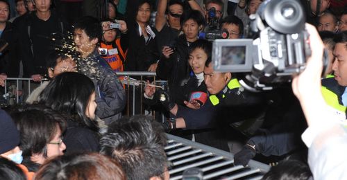 因我留在記者室,真的要多謝South Ho幫忙做攝影,自走炮地幫手拍下情況。至少我可以肯定是,警方今次是違反守則,在沒有任何警告情況下就噴射胡椒噴霧。我頗同意他的說法,當他在遮打道影相,有位防暴警察是其同學,影相時大家互相笑一笑;